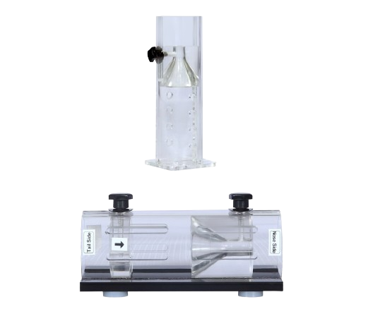 Flat bottom restrainers are manufactured from perspex cylinders mounted on a flat black perspex base. All the models have free access through both extremes, by opening the respective tilting door that is fixed by a screw at the upper part of the restrainer.